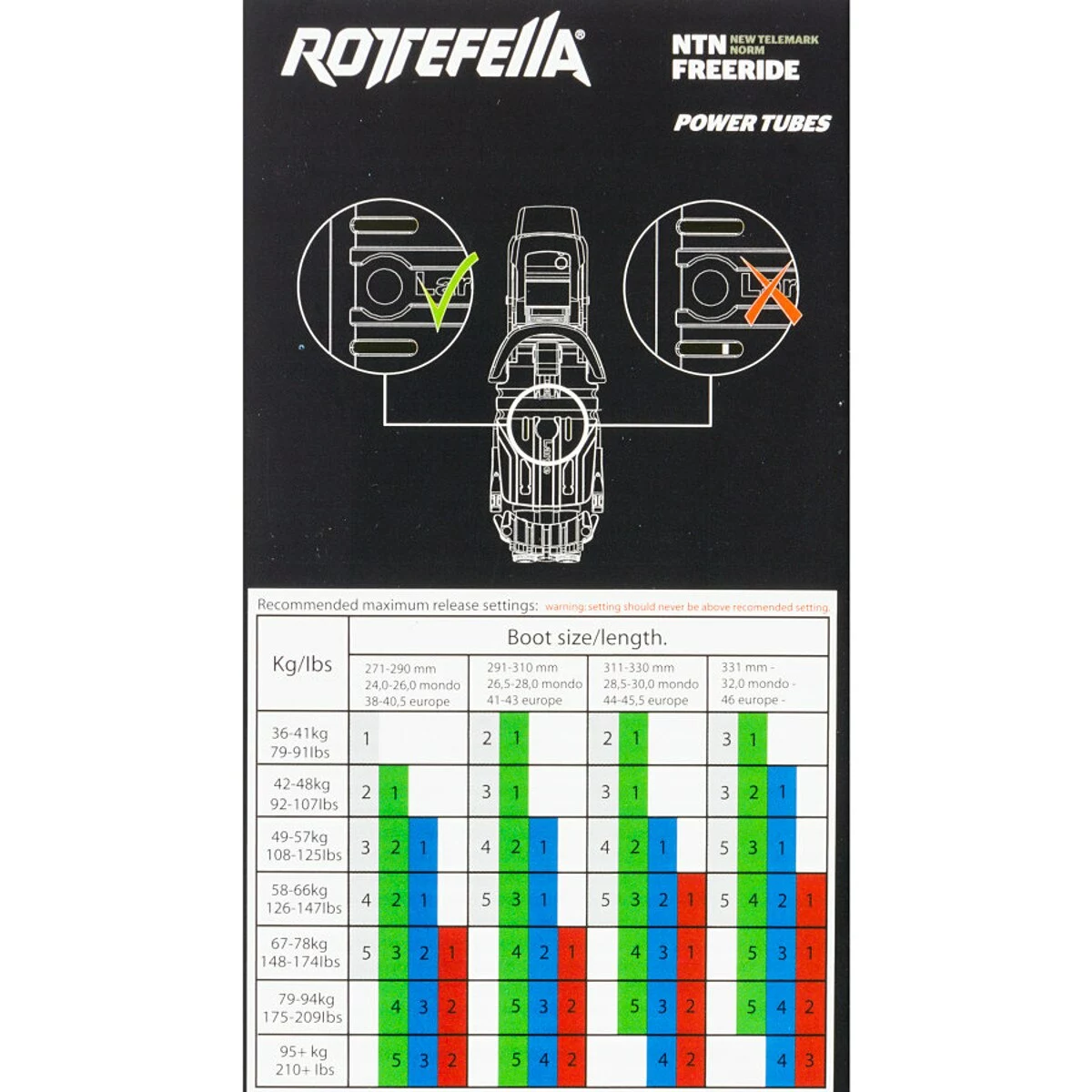 Scarpa gives NTN telemark skiers the freedom to choose the flavor of their ride with its Freeride Power Tubes. Power Tubes come in soft, medium, or rigid, depending on your style of skiing and how active you like your bindings to feel.