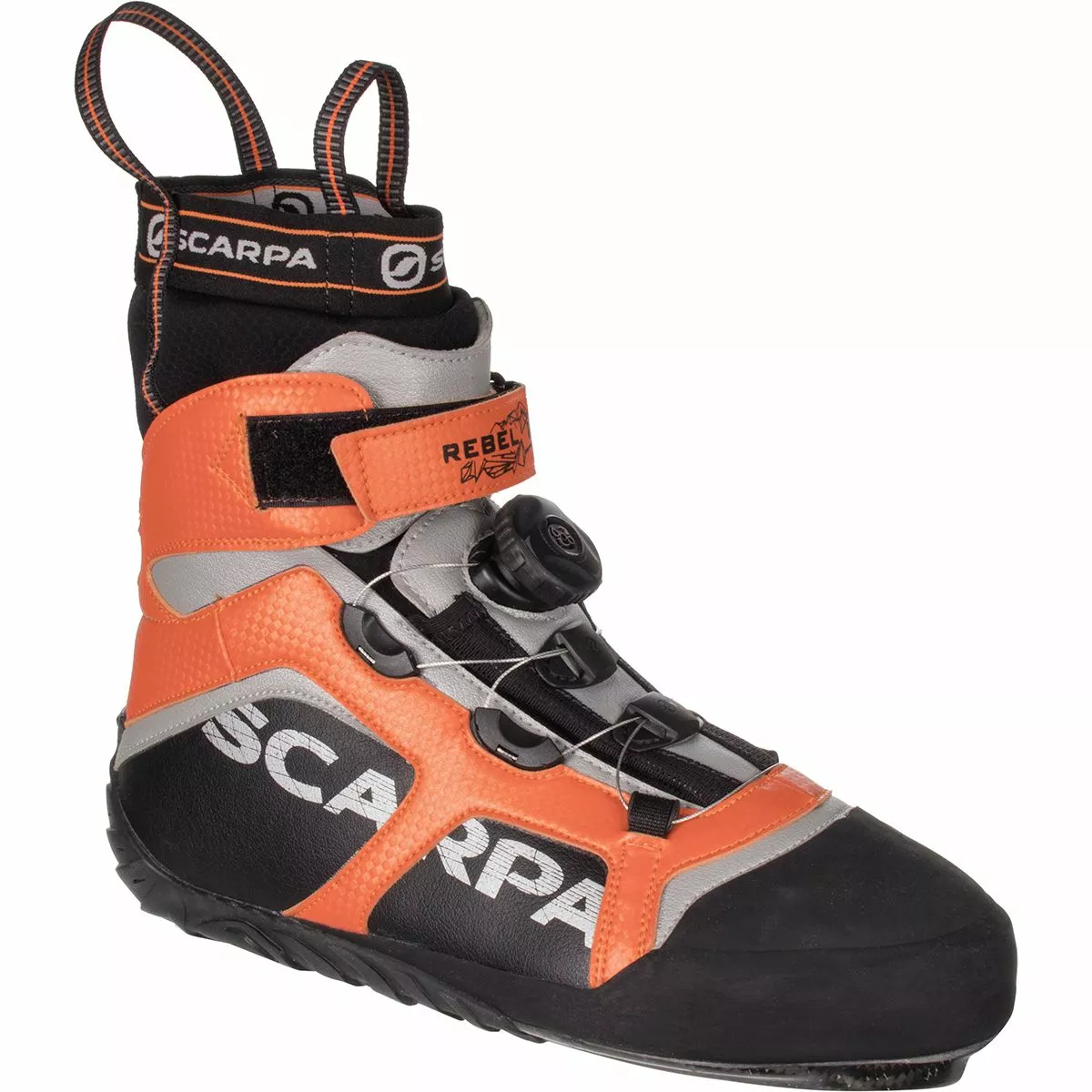 The lightweight Microtech upper works with Scarpa’s Sock-Fit technology to deliver a snug fit for better response on the wall, while Primaloft Micropile insulation works to keep your feet warm during cold winter climbs. The Rebel is quickly secured to your foot with the Boa closure system, and the single hook-and-loop strap works to lock your ankle into place. The Rebel does not come with crampons or screws, but it is pre-drilled to accept Grivel and Black Diamond crampons.